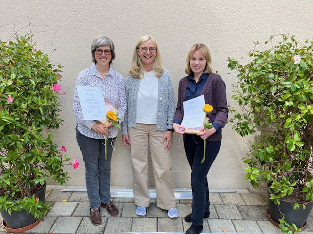 Die Ausbilderin Marita Brümmer ( Mitte) freute sich sehr über die gelungenen VHT- Guide Zertifizierungen von Daniela Hess ( links ) und Melanie Kreis.